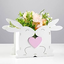 Кашпо деревянное "Зайчики" белый. 25,5 х 8,5 х 16,5 см