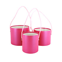 Коробка-кашпо (пластик), D11xH14 см, с ручкой Темно-розовый, (H-14, D-11, Темно-розовый)