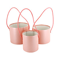 Коробка шляпная, D18xH17 см - D13xH12 см, набор (3 шт), без крышки, с ручкой Розовый (Розовый)