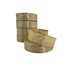 Лента атлас, 25 ммx25 ярд, с золотой окантовкой Бежевый (2 286 x 2,5, Бежевый)