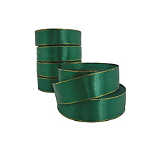 Лента атлас, 25 ммx25 ярд, с золотой окантовкой Темно-зеленый (2 286 x 2,5, Темно-зеленый)